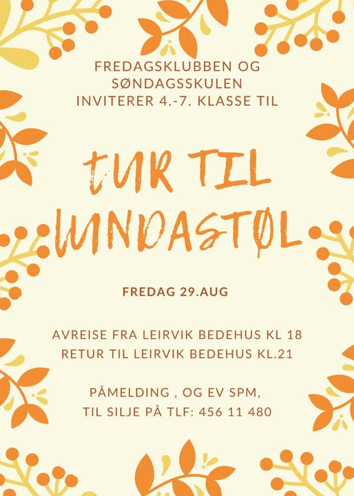 23. Søndag Utleige Kristent Felleskap Hovudsalen kl 16