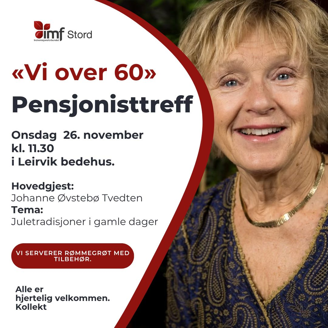 26. Onsdag Pensjonistlaget kl 11:30 Hovedgjest er Johanne Øvstebø Tvedten