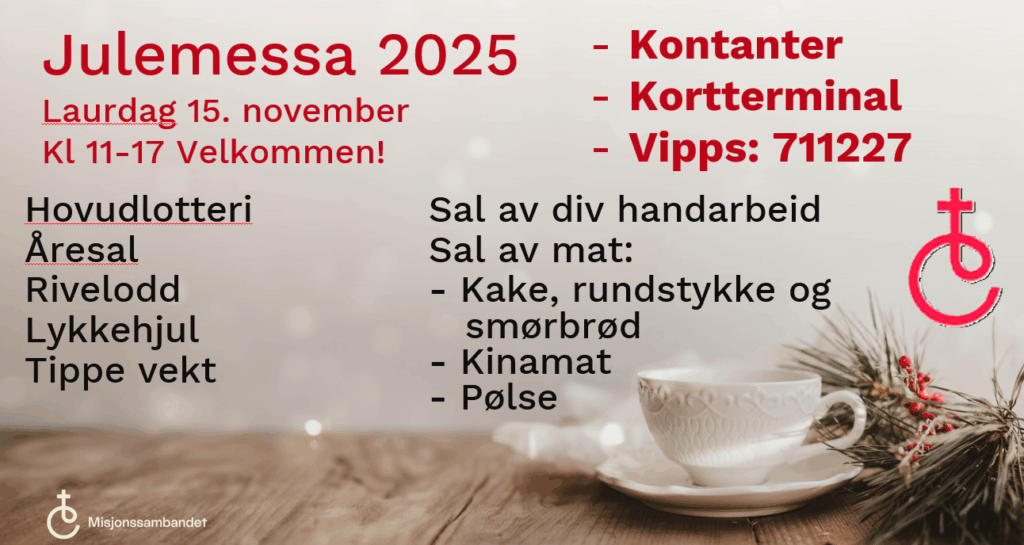18. Laurdag Fellesmøteveke kl 14 SLB og alle organisasjonane